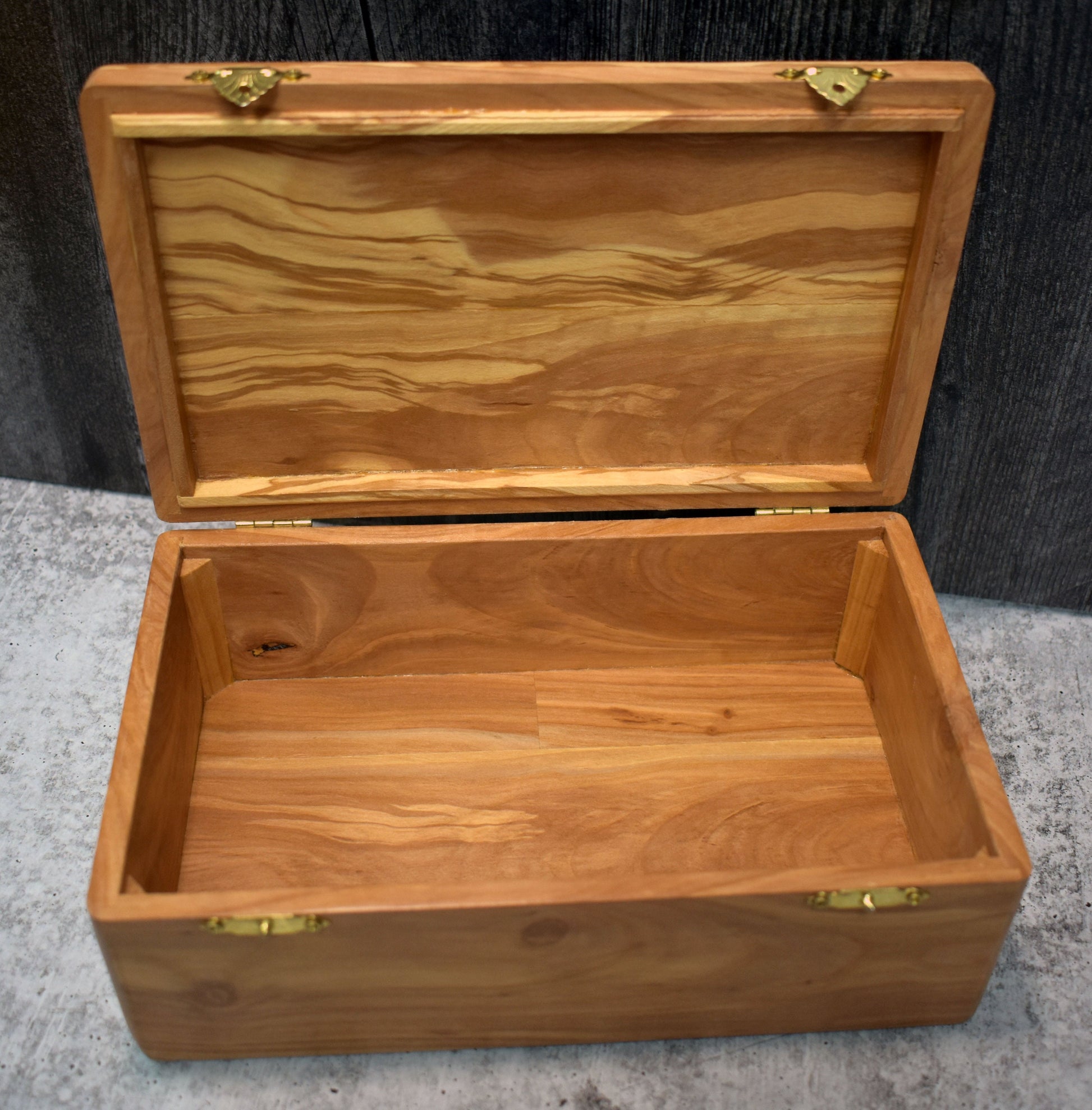 The box is made of Apple Wood and was handmade. He was hand sculpted by me then painted with highlights as well. The box he is resting on measures 8.75 inches long by 5 1/2 inches wide and is 3 inches deep (4.5 inches with sculpture). The box has 2 latches for closures. This big guy would make the perfect addition to any dragon collection and would make a wonderful decoration for any table or shelf. The box could hold jewelry, photos, a diary, memorabilia, or just a collection of things you want to keep.