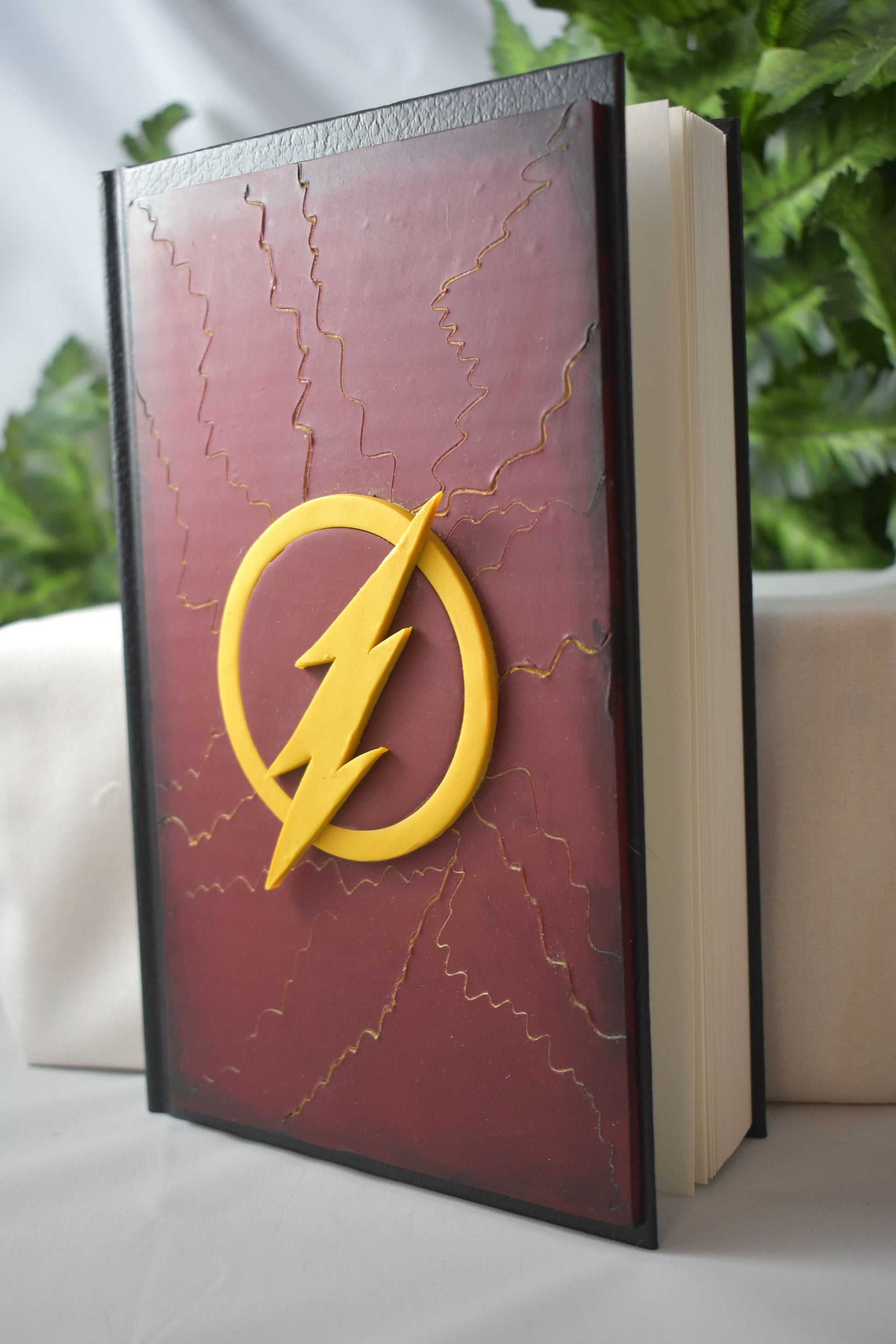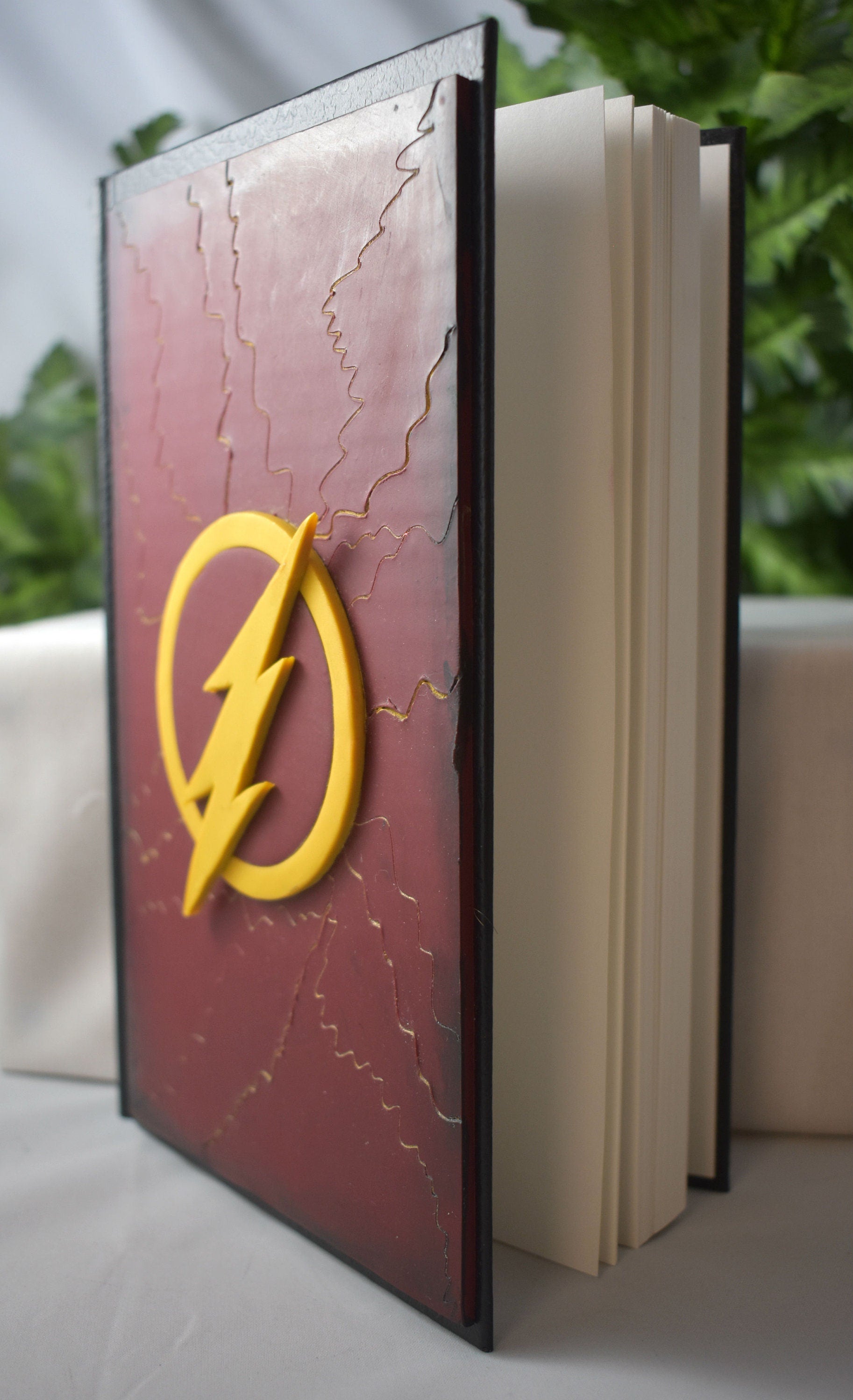 The cover has been hand sculpted and hand painted. This book would make the perfect addition to any journal collection. There are over 150 pages of blank, unlined, heavy weight 65lb paper perfect for writing, drawing, or even doodling. This paper is ideal for pencil, crayon, charcoal, and pastel. The journal measures 8.25 in x 5.75 in and has a hardbound black cover under the clay.
